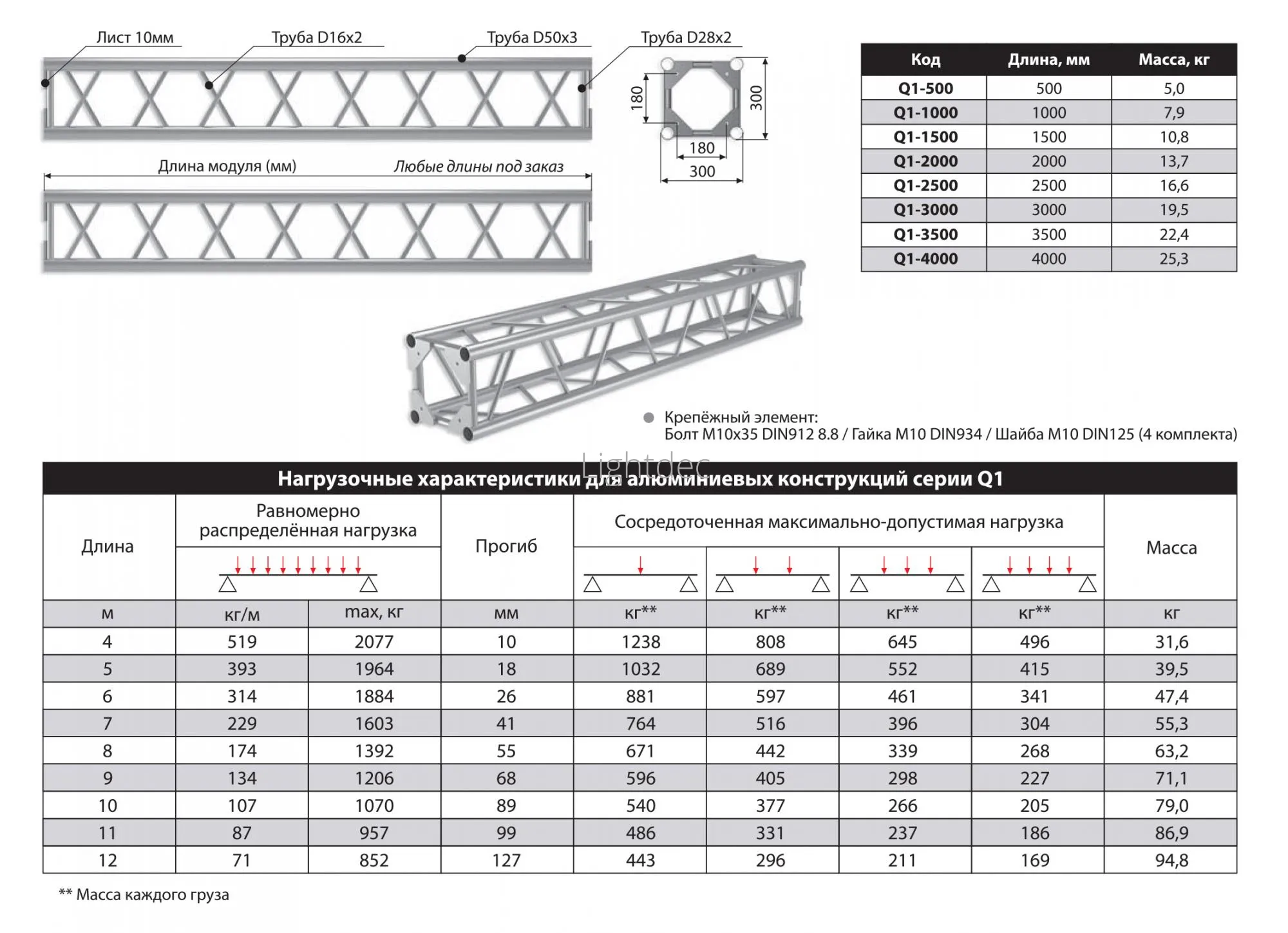 - Длина фермовой конструкции: 3000 мм.