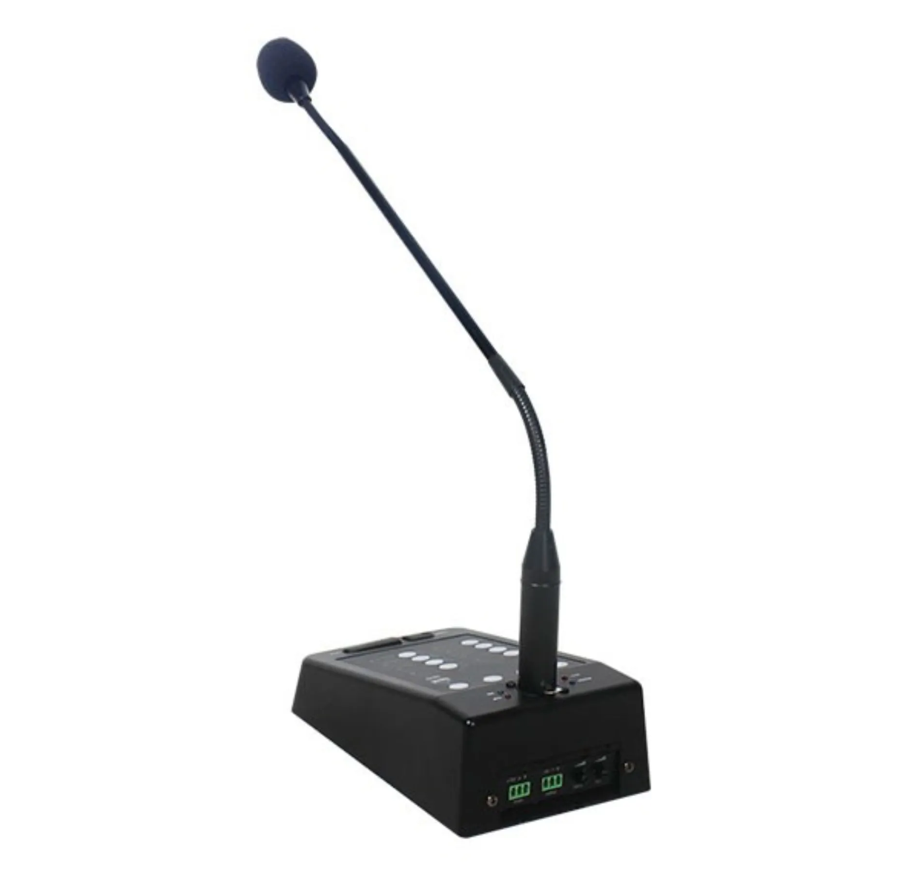 Восьмиканальная микрофонная консоль с селектором зон. Имеет функцию регулировки громкости микрофона и сигнала Chime. Управляется по протоколу RS485. Длина микрофона составляет 450 мм. Размеры консоли без микрофона: 115 x 60 x 195 мм, вес — 1,2 кг.