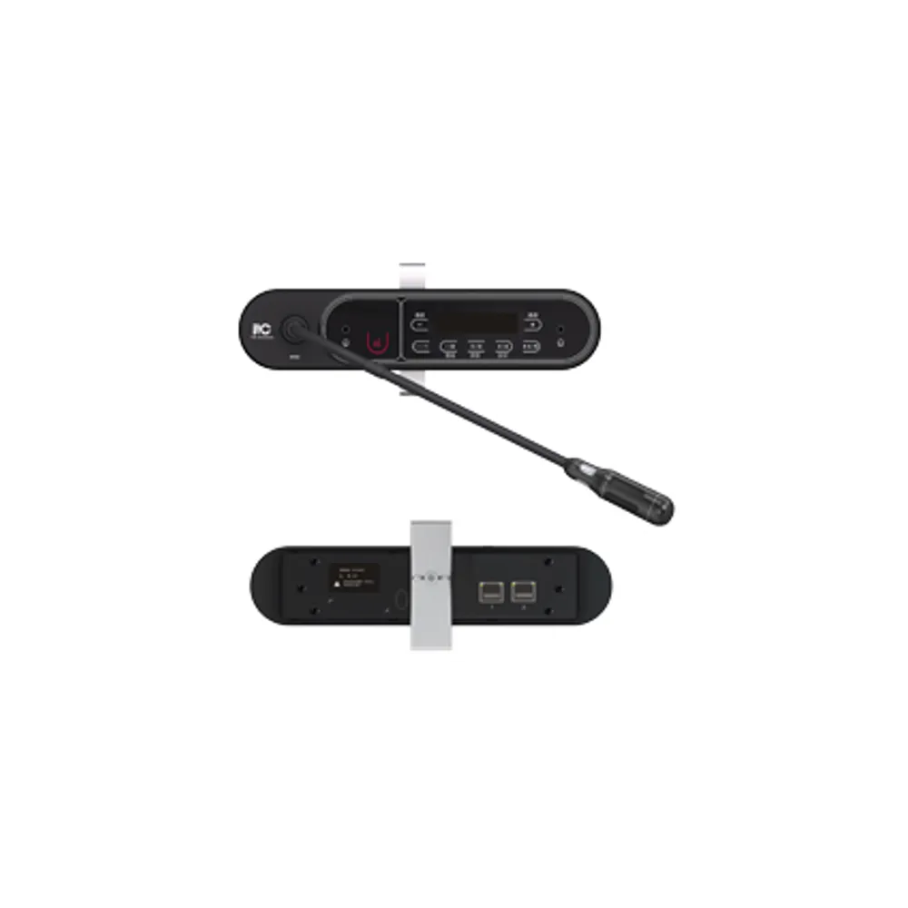 Описание пульта председателяСенсорный пульт председателя обеспечивает тихое и удобное управление. Поддерживает голосовое управление с регулировкой чувствительности и времени закрытия микрофона. Оснащён функцией подавления обратной связи и 5-полосным эквалайзером. Позволяет инициировать голосование, хронометраж речи и обратный отсчёт. Поддерживает множество языков и уведомления SMS. Имеет OLED-дисплей и возможность обновления прошивки.