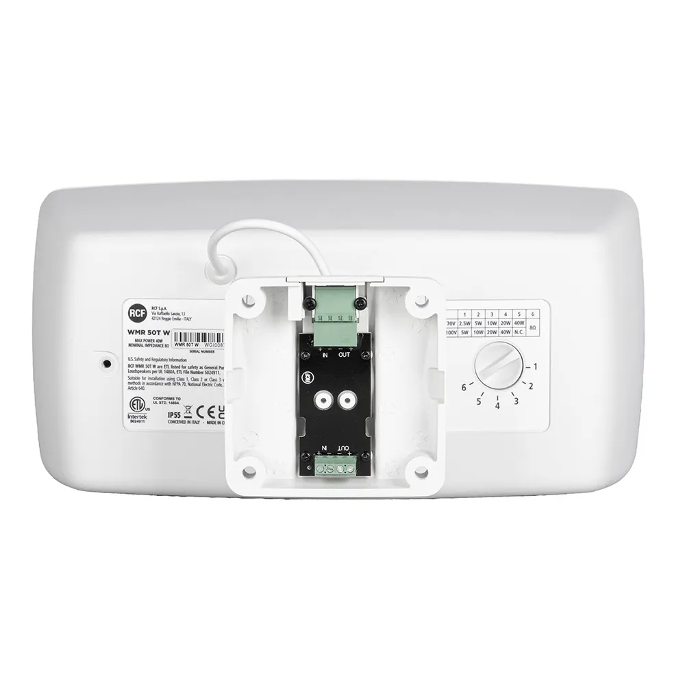 Описание громкоговорителяRCF WMR 50T W — это настенный двухполосный громкоговоритель со степенью защиты IP55. Его элегантный дизайн позволяет гармонично вписать устройство в любое пространство.