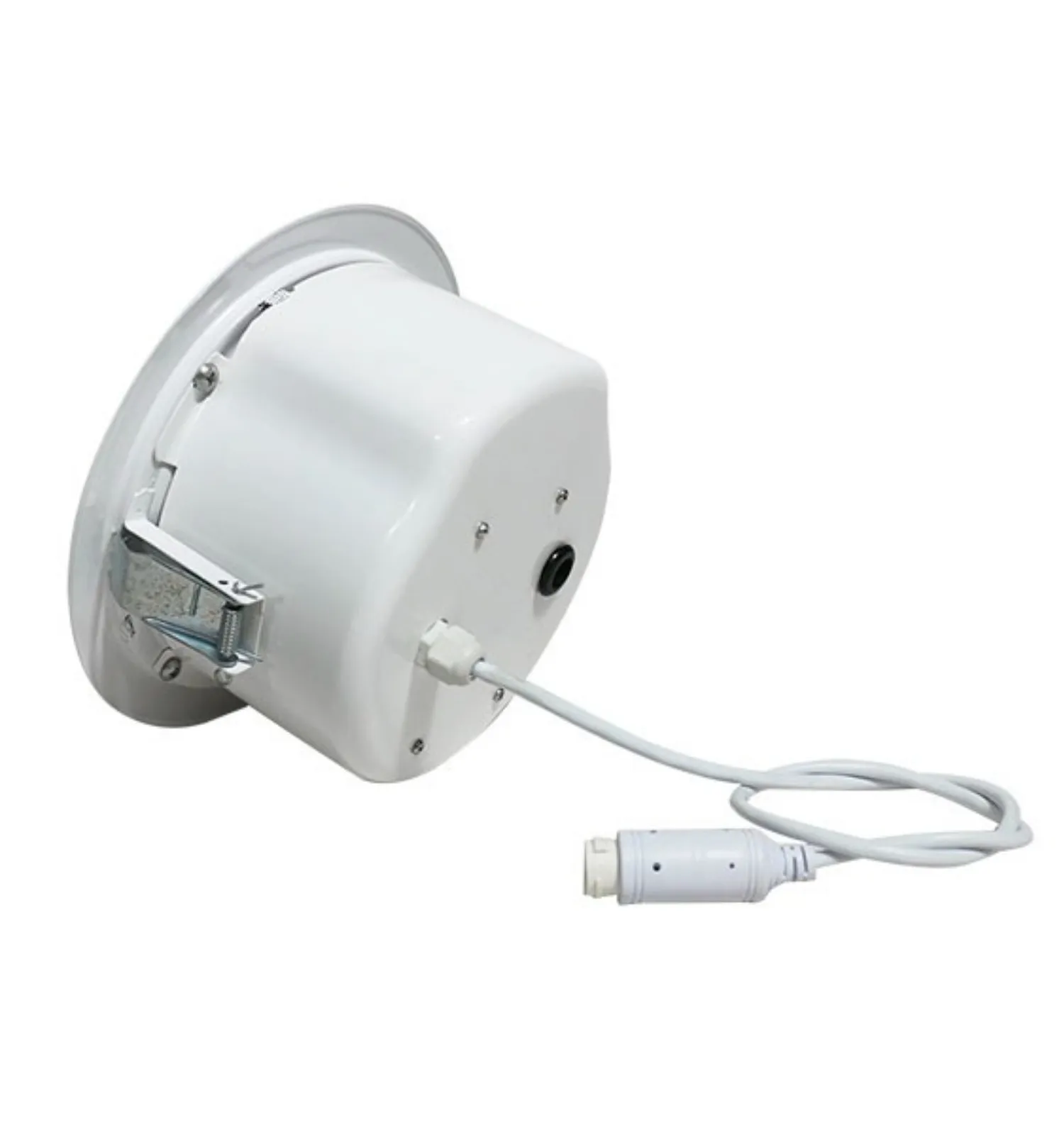 Описание громкоговорителяПотолочный громкоговоритель с мощностью 15 Вт. Поддерживает SIP-протоколы (RFC2543 / RFC3261). Частотный диапазон: 100–18000 Гц. Питание через PoE (IEEE802.3at) 48 В или 12 В (2 А), блок питания не включён в комплект. Размеры: 200 x 90 мм. Корпус из металла, цвет — белый. Вес: 0,95 кг.