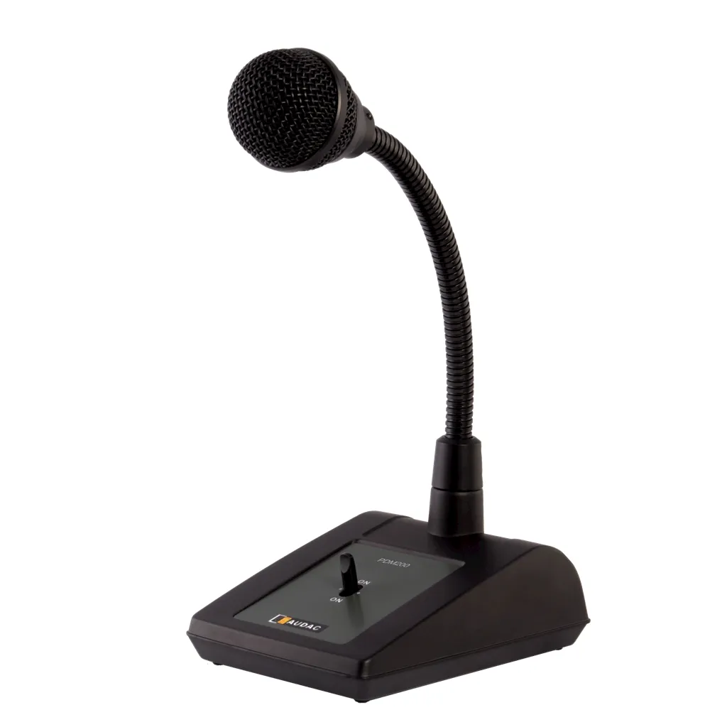 Audac PDM200 — динамический пейджинговый микрофон с гибким кронштейном. Подходит для объявлений в магазинах, офисах, складах и общественных зданиях.