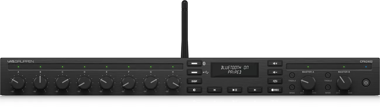 Микшер-усилитель Lab.gruppen CPA2402Микшер-усилитель Lab.gruppen CPA2402 — это двухканальное устройство класса D, разработанное в Швеции. Оно имеет 8 входов и 2 выхода, поддерживает воспроизведение музыки с USB и по Bluetooth. Рабочий диапазон частот составляет от 20 Гц до 20 кГц. Мощность каждого канала — 240 Вт. Устройство совместимо с различными акустическими системами и подходит для коммерческих систем звукофикации.