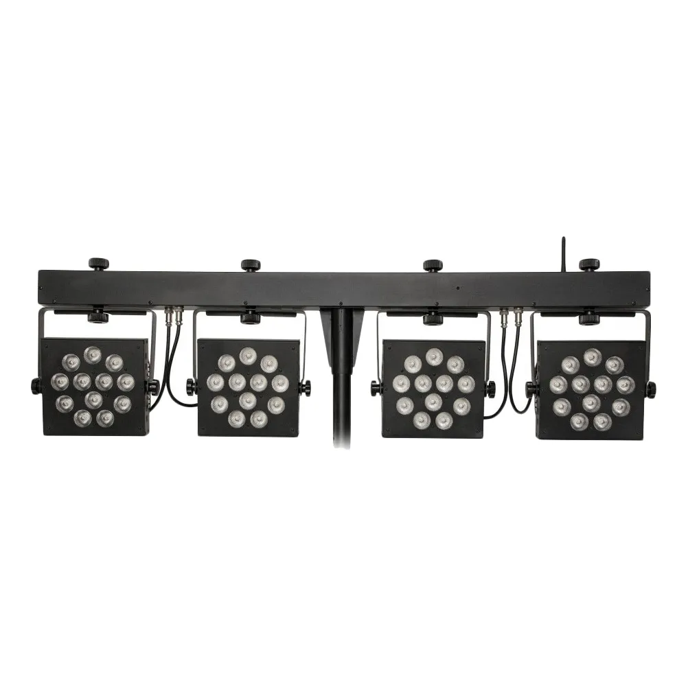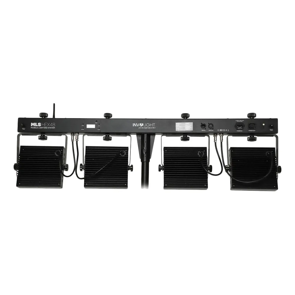 Световая установка Involight MLS HEX48 — это четыре LEDPAR с RGBWA/UV-светодиодами (12 шт. x 12 Вт). В комплекте кейс, ИК-пульт и ножной контроллер. Стойка не предусмотрена.