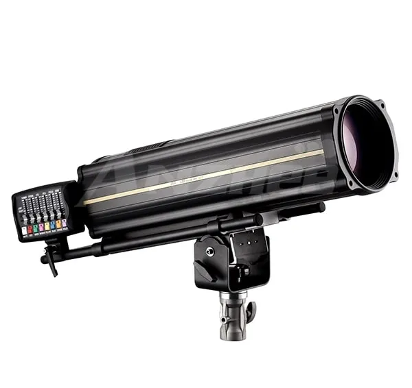 Anzhee PRO Follow SPOT 350 ZOOM-M — светодиодный прожектор с регулируемым углом (7–13°) и мощностью 350 Вт. Оснащён 7 цветовыми фильтрами, 3 фильтрами с разной цветовой температурой и моторизированными функциями. Управление через выносной пульт или DMX.