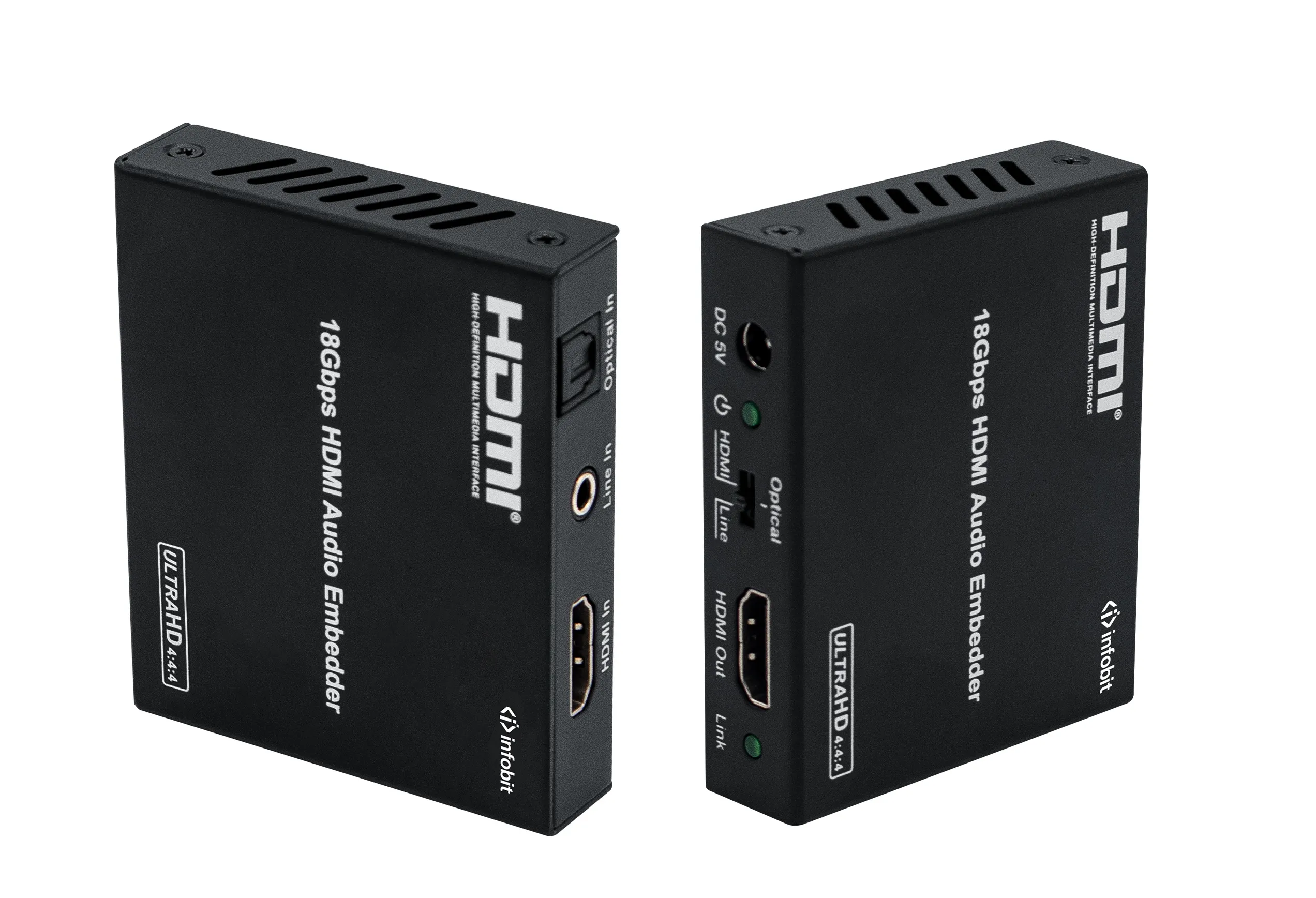 Эмбеддер HDMI Infobit iTrans AE01Infobit iTrans AE01 — это устройство, которое интегрирует аудиосигналы из цифрового оптического или аналогового источника в HDMI-выход. Поддерживает видео до 4K2K при 50/60 Гц, 10-битный HDR и передачу аудиоформатов высокого разрешения, включая Dolby Atmos и DTS-HD Master Audio. Совместим с HDCP 2.2 и DVI 1.0.