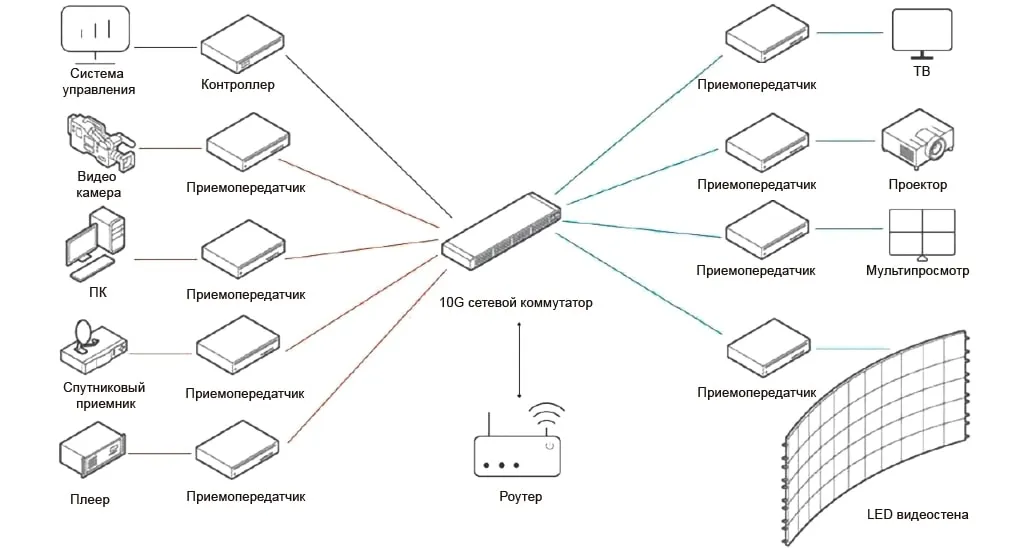 Prestel IPN-4KSDVOEPrestel IPN-4KSDVOE — это устройство для передачи 4K видео и аудио по IP или оптоволоконной сети. Оно совместимо с HDMI 2.0b и HDCP 2.2, поддерживает разрешение 4K при 60 Гц и скорость передачи данных 18 Гбит/с. Устройство поддерживает HDR10, Dolby Vision, HLG, 3D и все аудиоформаты HDMI. Позволяет настраивать режим приёмника или передатчика через кнопку или API, а также подходит для использования с матрицами и видеостенами до 9x9 и мультипросмотром до 25 окон.