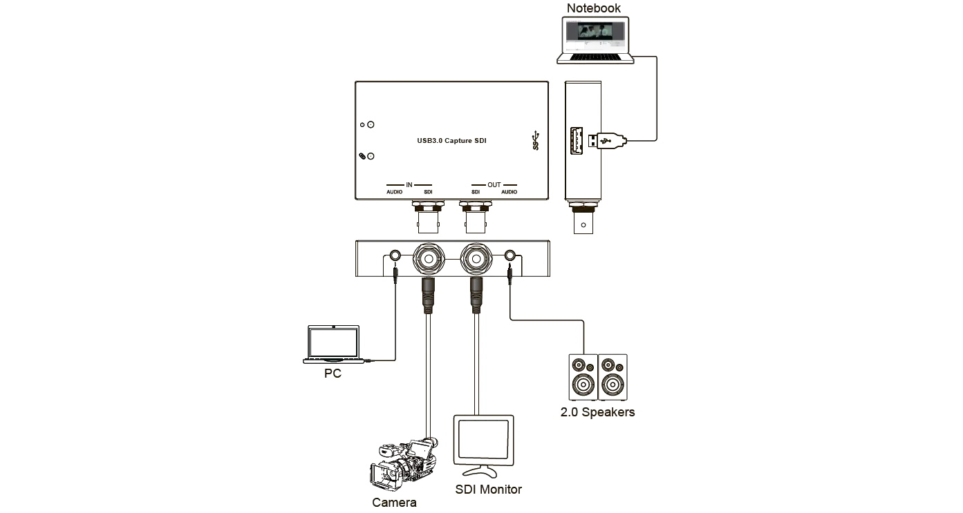 Интерфейсы: вход аудио, вход SDI, выход SDI, выход аудио, USB3.0.