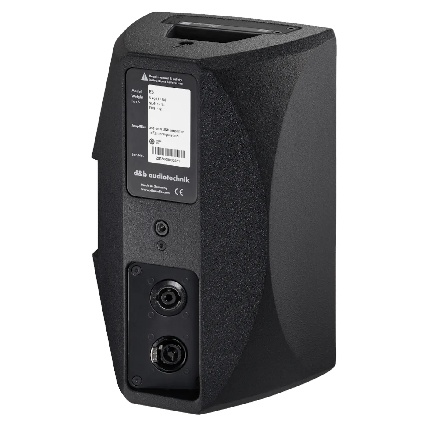 Описание акустической системыКоаксиальная акустическая система с двумя полосами частот, диаметр динамиков — 6,5 дюймов, дополнительный твитер — 1 дюйм. Мощность: номинальная — 150 Вт, максимальная — 800 Вт. Сопротивление — 20 Ом. Уровень звукового давления (SPL) достигает 123 дБ. Частотный диапазон: от 85 Гц до 18 кГц. Угол раскрытия: 100° по горизонтали и 55° по вертикали. Вес: 5 кг. Разъём: NL4.