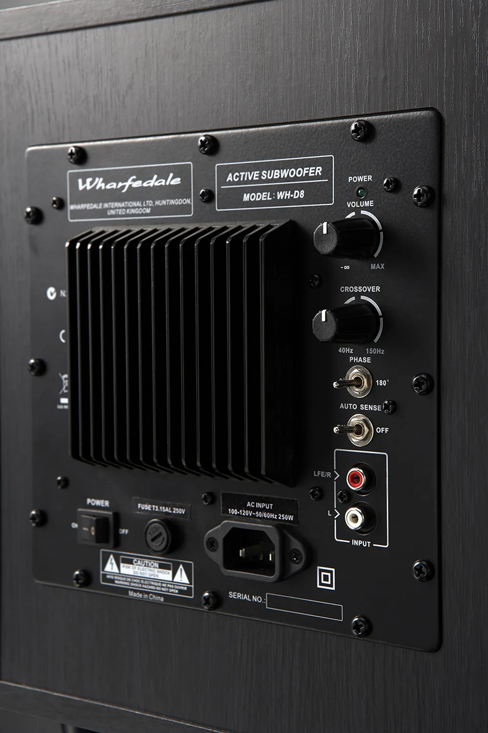 Активный сабвуфер Wharfedale WH-D8, цвет — чёрное дерево, мощность — 70 Вт.