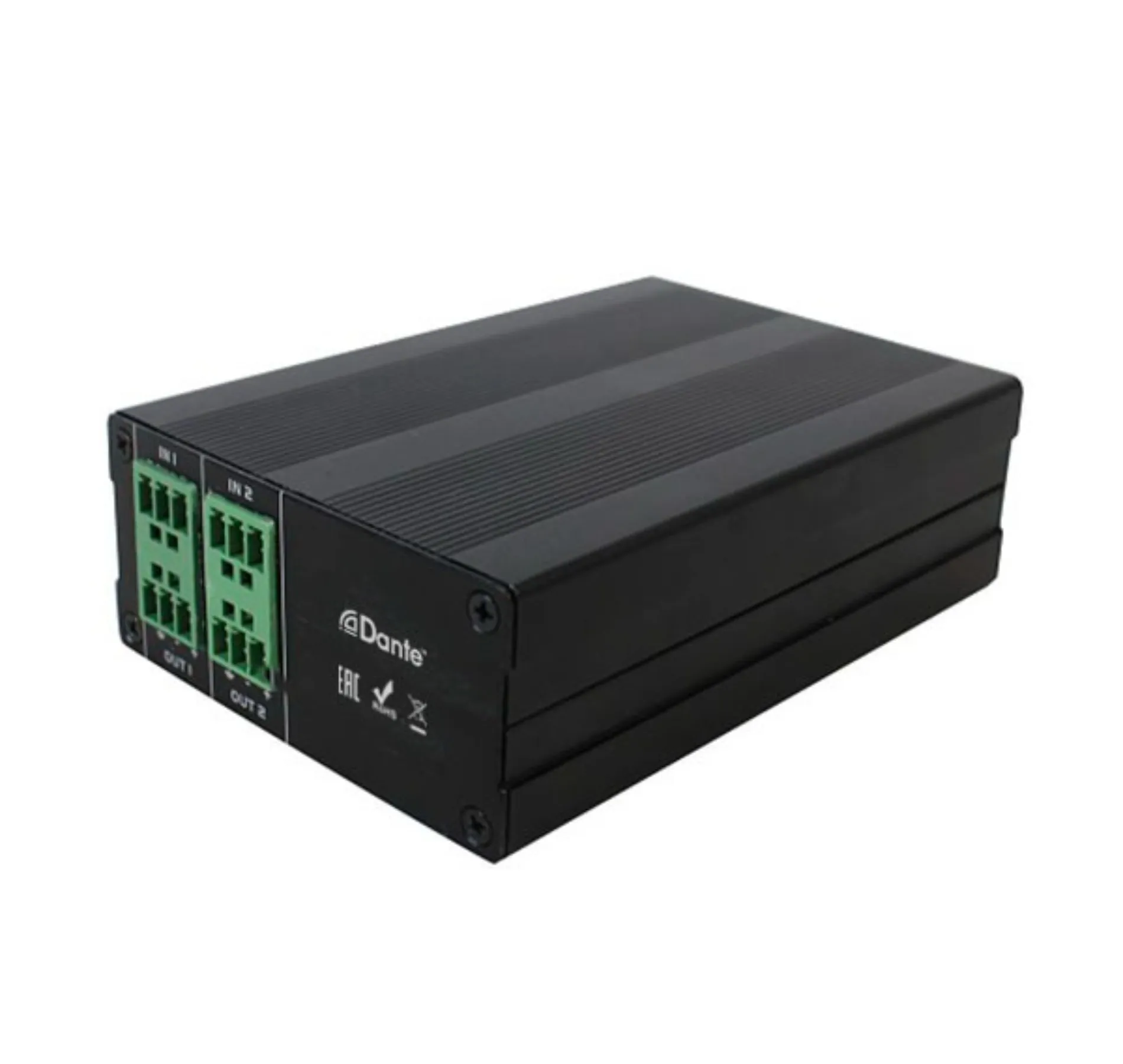 Описание аудиоконвертераКомпактный сетевой аудиоконвертер с двумя балансными входами и выходами (Phoenix). Поддерживает Dante и AES67 через RJ45. Питание осуществляется через РОЕ или DC 12В. Размеры устройства — 123x75x35 мм. В комплекте идёт РОЕ-спитер.
