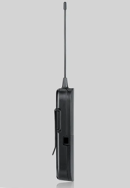Компактный передатчик для беспроводных систем BLX работает на расстоянии до 100 метров. Имеет регулятор уровня сигнала и кнопку включения/отключения. Питание от двух батареек АА 1,5 В. Время работы до 14 часов. Индикация заряда на корпусе. Лёгкий (75 г) и компактный (11 см х 6,4 см х 2,1 см). Диапазон частот: 662–686 МГц.