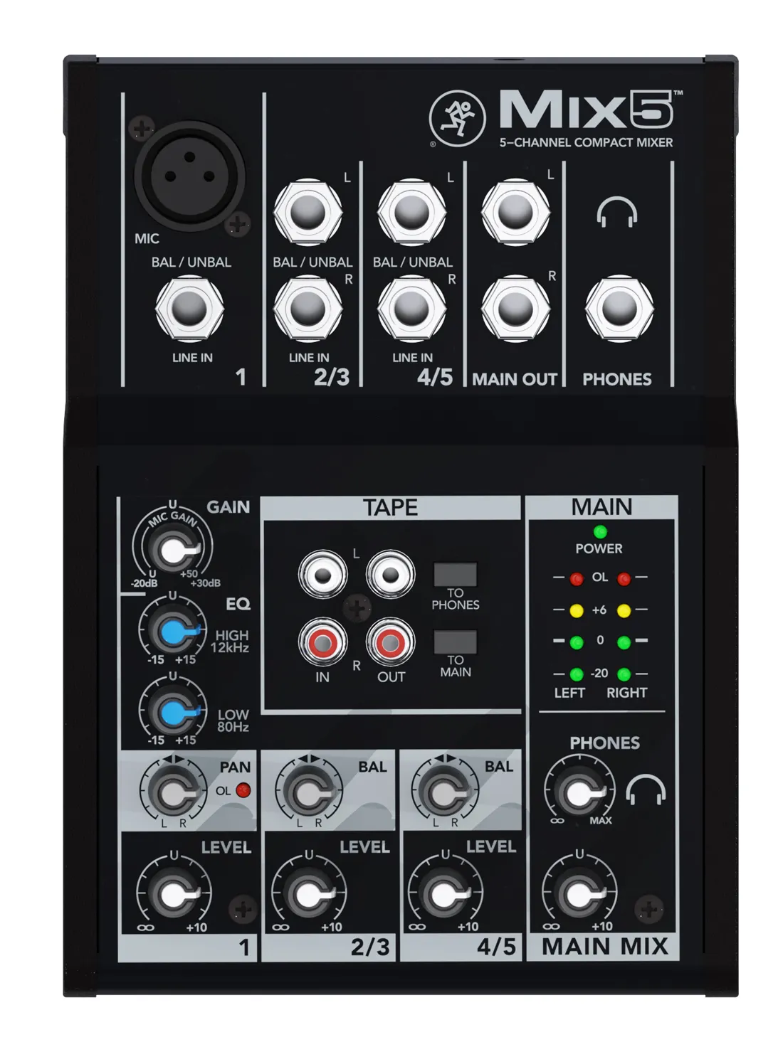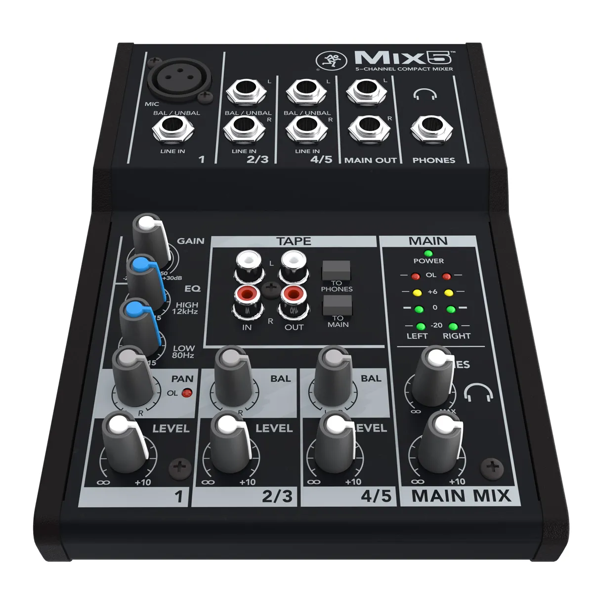 MACKIE Mix5 — небольшой аналоговый микшер для авторов и исполнителей, репетиций, выступлений и мероприятий. Доступная цена сочетается с базовыми функциями и надёжностью.