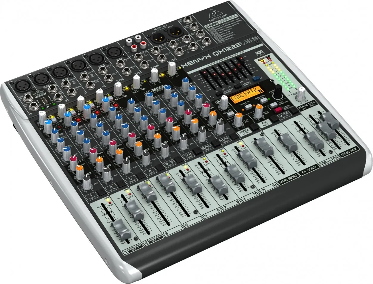 BEHRINGER QX1222USB — микшерный пульт с 6 микрофонными входами. Есть дополнительные каналы для работы со стереоканалами устройств. В пульте есть система обнаружения обратной связи, стереоэквалайзер, порт ULM для беспроводных микрофонов. Есть функция Voice Canceller для караоке и другие возможности. Прочная конструкция и высокое качество компонентов обеспечивают долгий срок службы.
