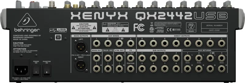 QX2442USB оснащён микрофонными предусилителями с широким диапазоном работы и трёхполосным эквалайзером. Подключение к компьютеру — через USB-кабель.