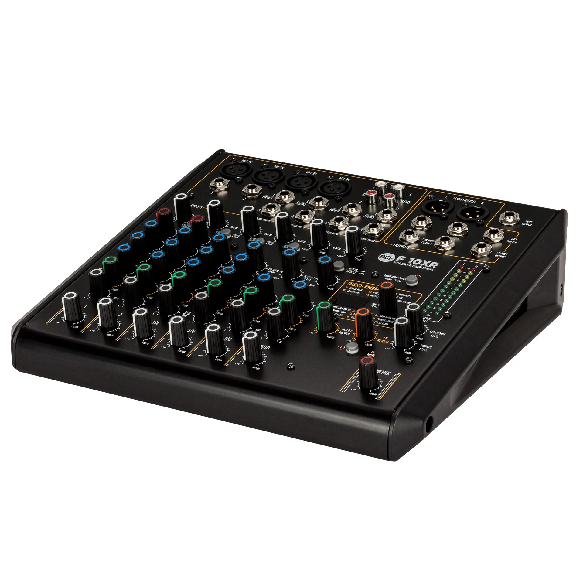 Микшерный пульт RCF F 10XR — профессиональный инструмент от итальянской компании RCF. Модель оснащена 10 сбалансированными каналами и USB-аудиоинтерфейсом для записи сигнала на компьютер. В пульте есть профессиональные пресеты для эффектов (реверберация, задержки, хорус, фленджеры, эхо) и два управляющих компрессора.