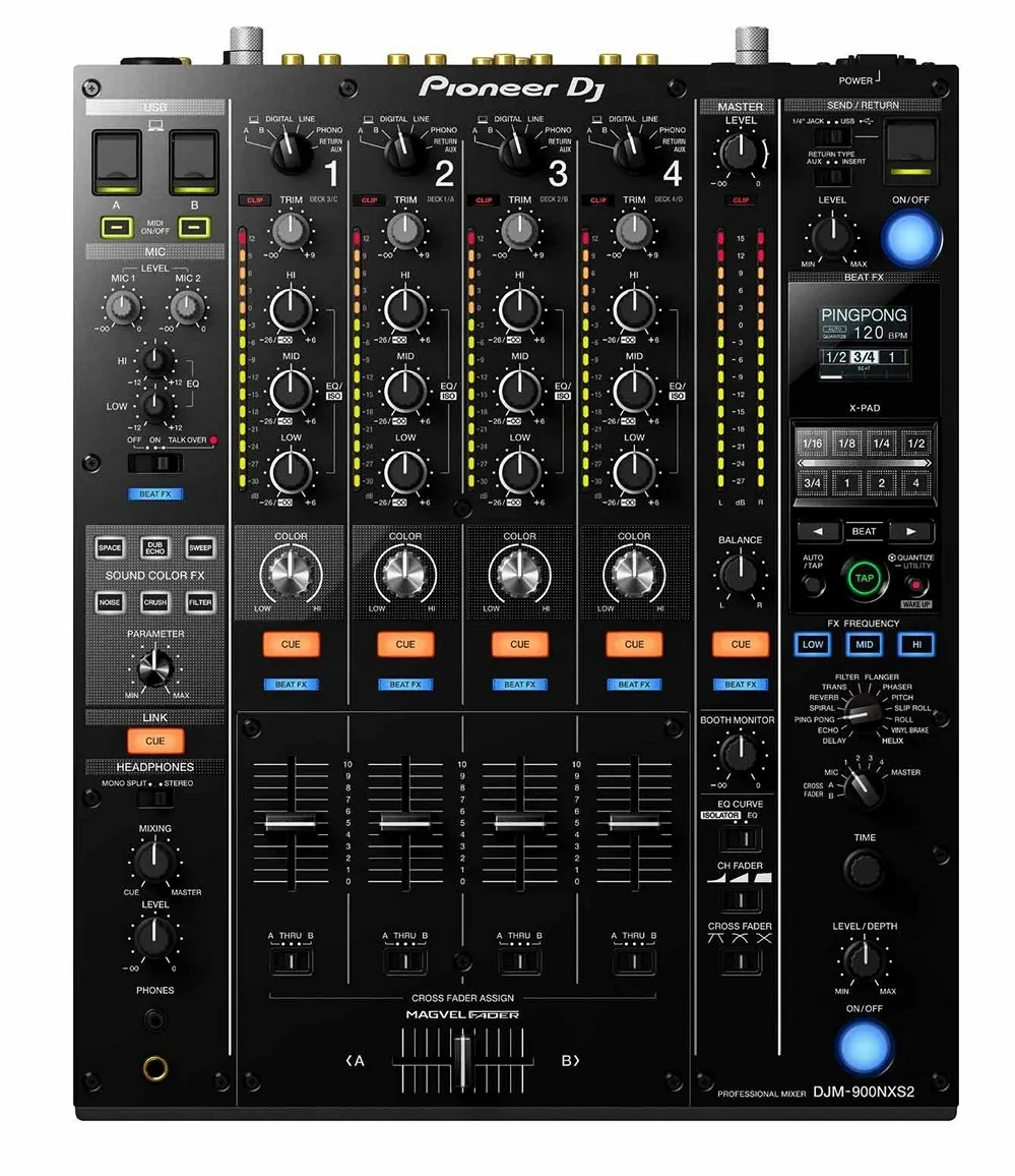 Микшерный пульт Pioneer DJM-900NXS2 — профессиональный инструмент с 64-битным процессором, обеспечивающий натуральное, тёплое и детальное звучание. Улучшенный эквалайзер, фейдеры и индикаторы перегрузки облегчают микширование. Пульт поддерживает внешние эффекты и DVS, имеет четыре входа phono, два USB порта и Pro DJ Link для подключения до четырёх проигрывателей. Надёжная конструкция и высококачественные компоненты делают DJM-900NXS2 идеальным выбором для профессионалов.