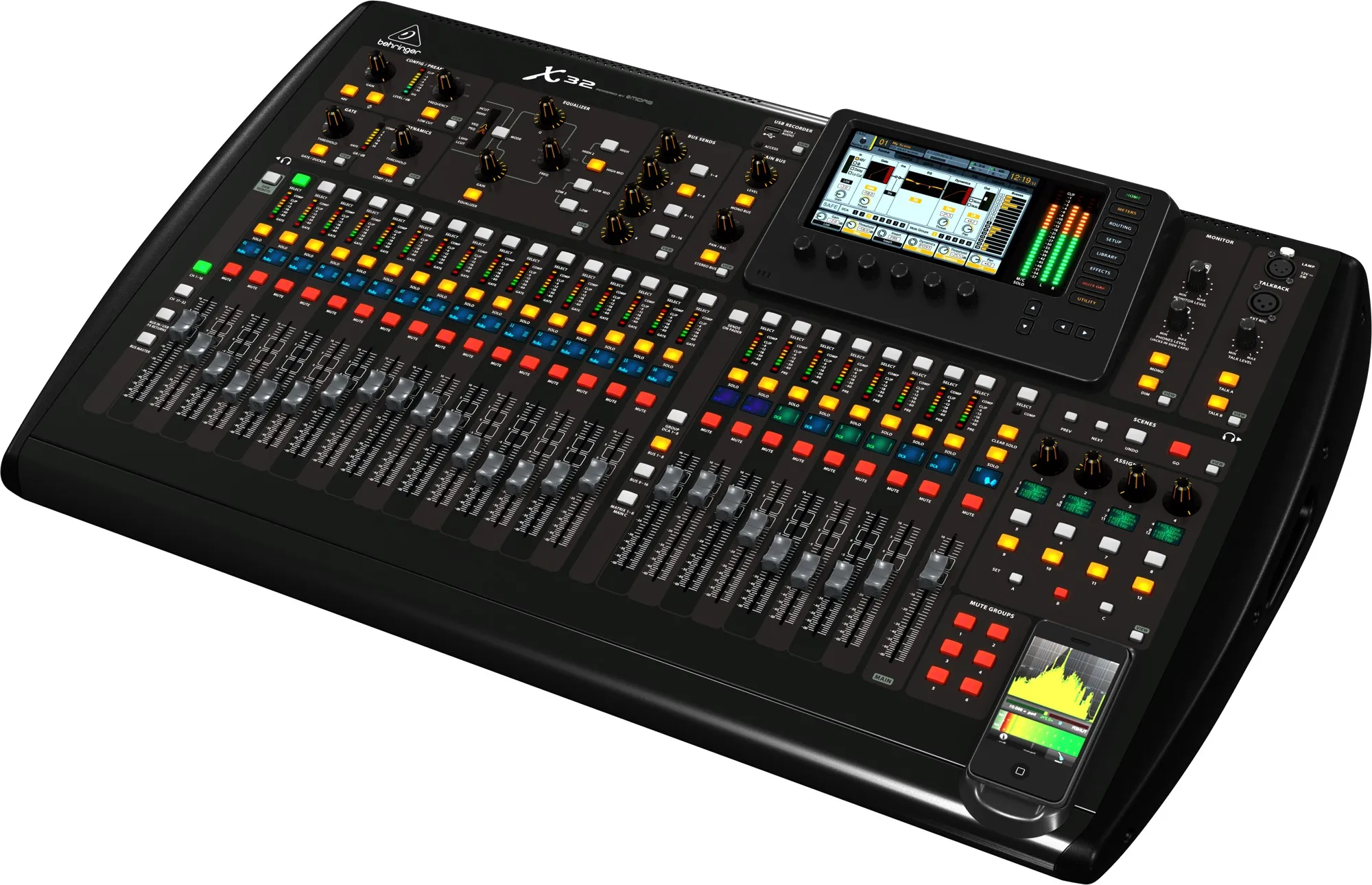 Behringer X32 — это мощный и интуитивный микшерный пульт. Он оснащён 40 каналами и 25 шинами для живого и студийного применения. Модель включает 32 программируемых микрофонных предусилителя MIDAS и 25 автоматизированных моторизированных фейдеров.