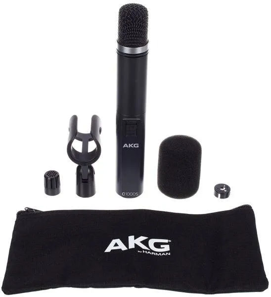 Конденсаторный микрофон AKG C1000S подходит для сцены и студии. Может работать без фантомного питания.