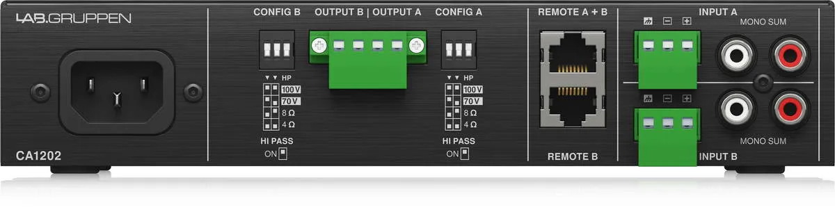 Lab.gruppen CA1202 — двухканальный коммерческий усилитель мощностью 2 x 120 Вт. Идеален для баров, ресторанов, магазинов, отелей и других объектов. Обеспечивает высокое качество звука через Low-Z и High-Z громкоговорители.