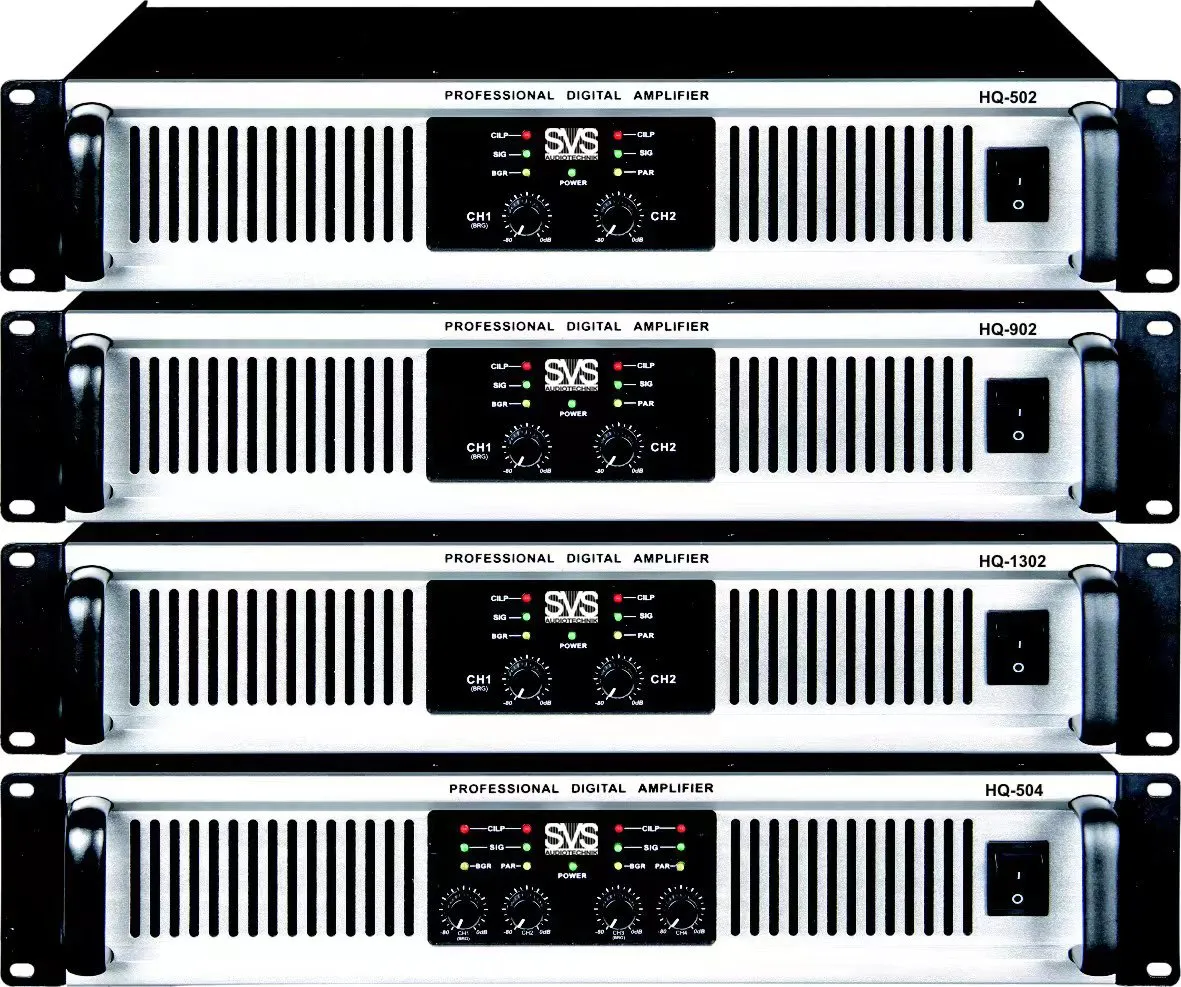 SVS Audiotechnik HQ-504 — это четырёхканальный усилитель класса D высотой 2U для инсталляционных объектов. Мощность: 4x500 Вт при 8 Ом, 4x750 Вт при 4 Ом. Оснащён светодиодами для индикации сигнала и состояния защиты.